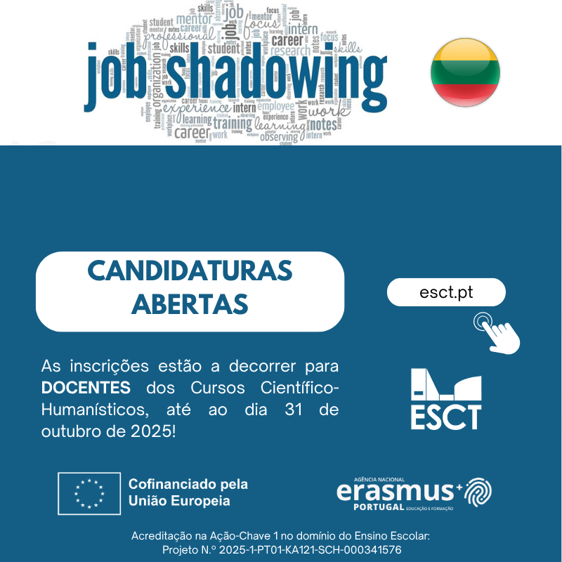 A Escola Secundária de Caldas das Taipas lança o convite à apresentação de candidaturas de docentes, no âmbito de mobilidades de pessoal em job shadowing, a realizar em Vilnius (Lituânia), no presente ano letivo.